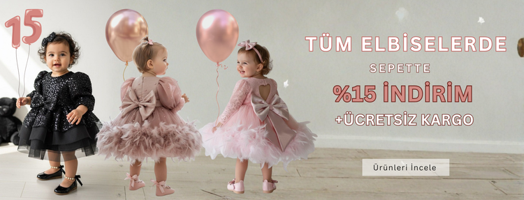 Juliet Koleksiyonu Bej Renkli Balon Kollu Parıltılı Bebek Abiyesi