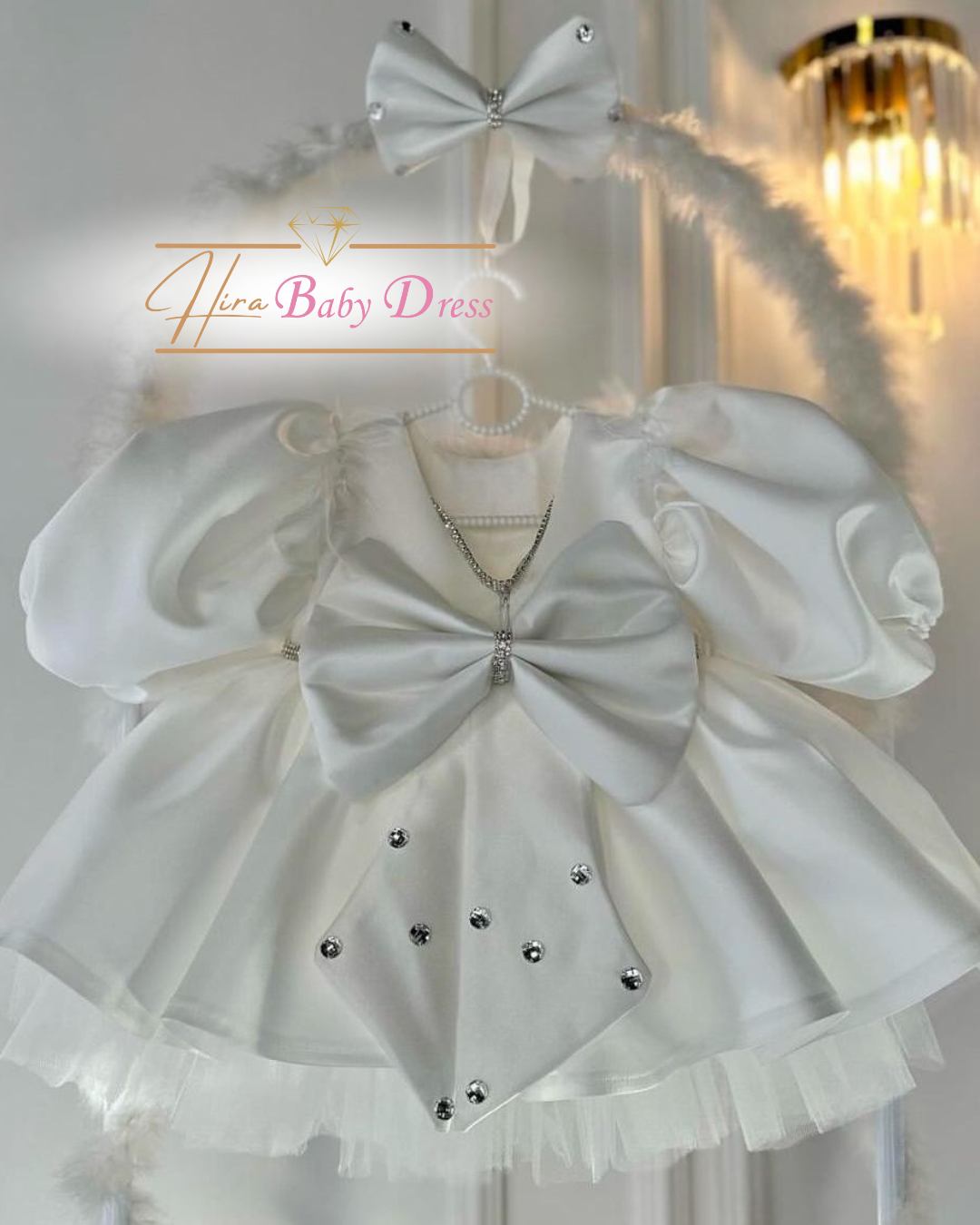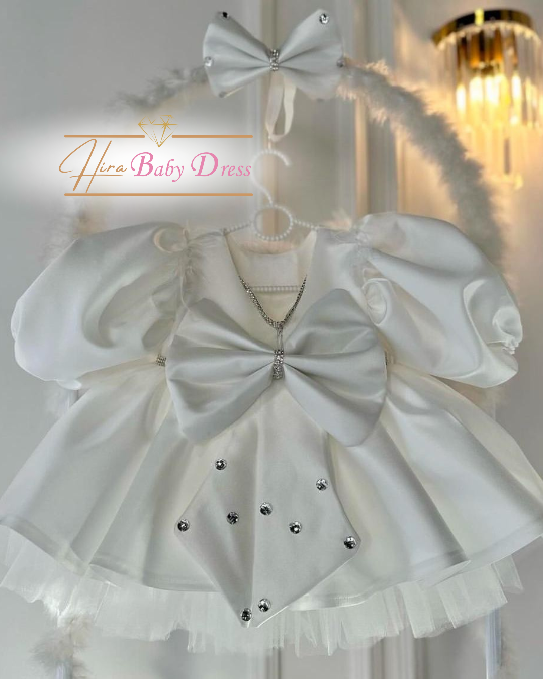 Özenle işlenmiş beyaz kumaşı ve ışıltılı taşlarla süslenmiş kemeriyle bu elbise, düğünlerin ve özel davetlerin en minik ama en göz alıcı yıldızı olmaya aday. Bebeğinizin rahatlığı düşünülerek tasarlanan bu kız bebek elbisesi, aynı zamanda unutulmaz fotoğraf karelerinin de başrolünde yer alacak.