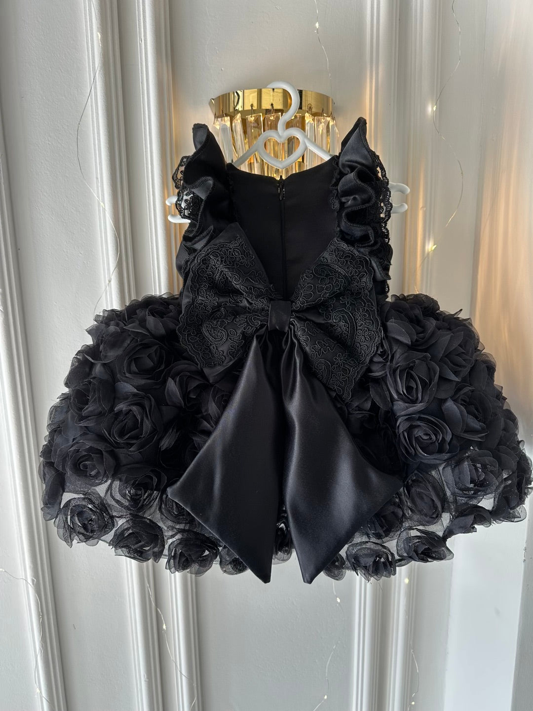 Fırfırlı Dantel Güllü Bebek Abiyesi, özel günlerde minik prenseslerin zarafetini ortaya çıkaracak şık bir tasarıma sahiptir. Yumuşak tül kumaşı ve inci detaylı eteğiyle bebeğiniz rahat ederken aynı zamanda göz alıcı bir şıklık kazanır. Siyah rengi güllerle süslenmiş zarif tasarımı, doğum günü, düğün, nişan, bayram ve özel davetlerde bebeğinize masalsı bir görünüm kazandırır.