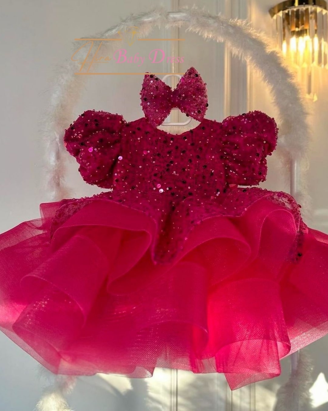 Parıltılı Bebek abiyelerimizin çok özel koleksiyonu olan Juliet Koleksiyonu İç Astarlı Balon Kolları ve katlı etek detayıyla dikkat çekiyor.