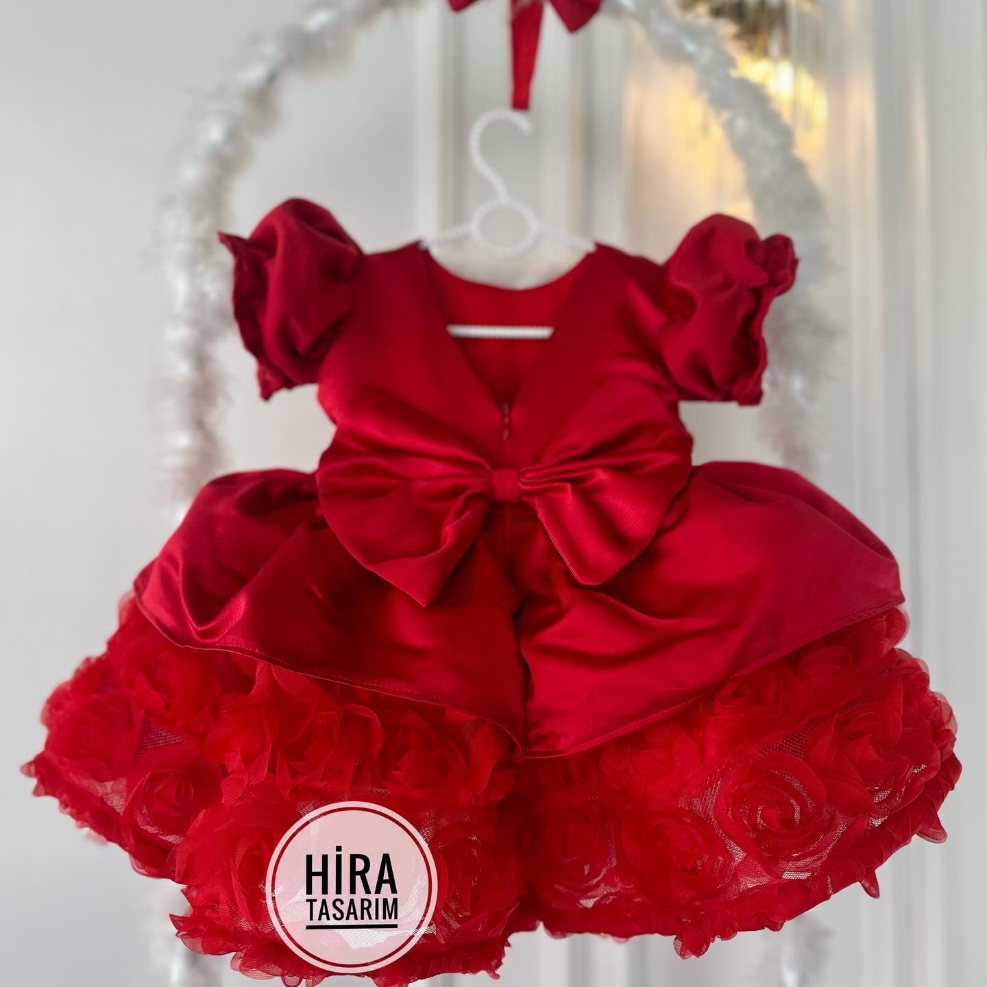 Kumaş Detay Etek Kırmızı Güllü Bebek Abiyesi, özel günlerde minik prenseslerin zarafetini ortaya çıkaracak şık bir tasarıma sahiptir. Yumuşak tül kumaşı detaylı eteğiyle bebeğiniz rahat ederken aynı zamanda göz alıcı bir şıklık kazanır. Kırmızı rengi güllerle süslenmiş zarif tasarımı, doğum günü, düğün, nişan, bayram ve özel davetlerde bebeğinize masalsı bir görünüm kazandırır.