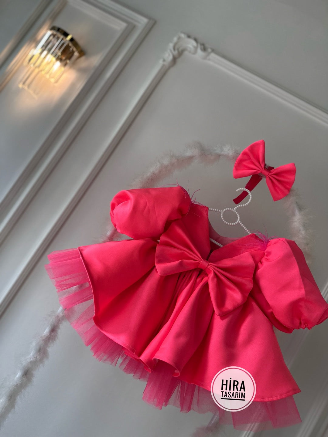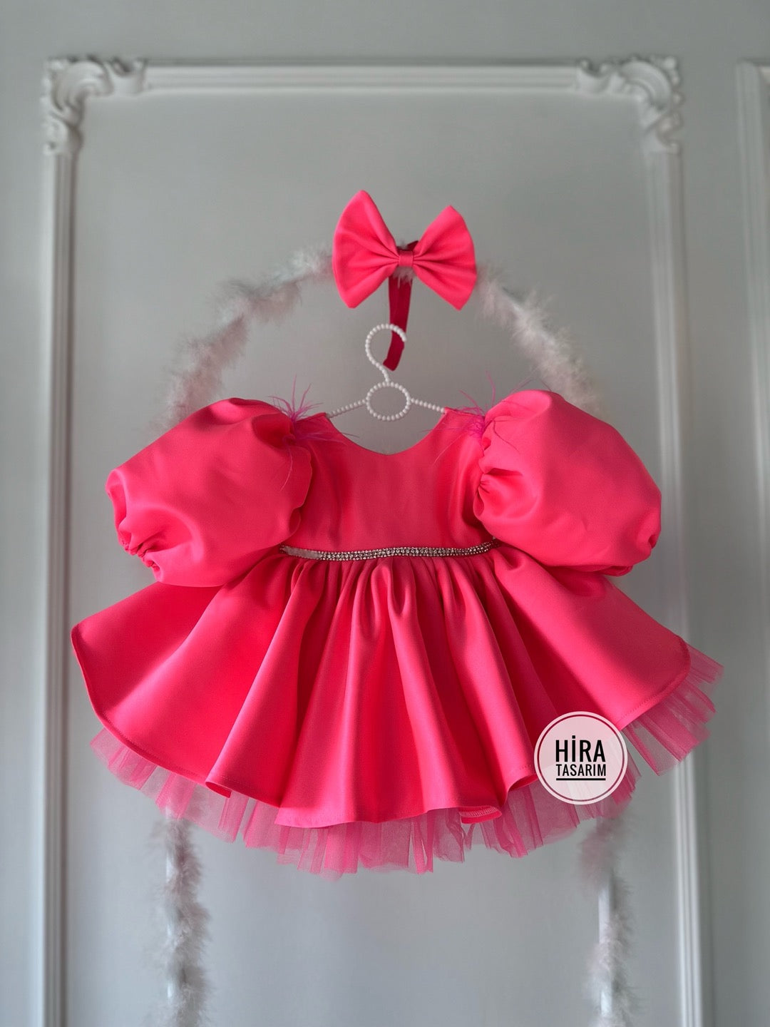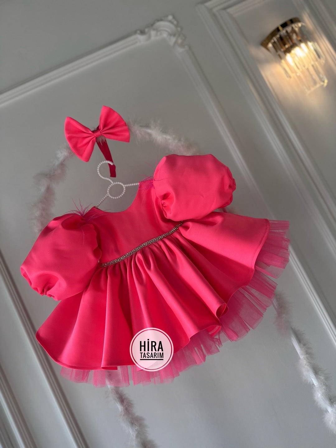 Prenses Bol Bol Taş Detay Fuşya Bebek Abiyesi , özel günlerde minik prenseslerin zarafetini ortaya çıkaracak şık bir görünüme sahiptir. Yumuşak tül kumaşı detaylı eteğiyle taşınırken rahat aynı zamanda göz cihazı bir şıklık kazanır. Fuşya rengi zarif tasarım, doğum günü, düğün, nişan, bayram ve özel davetlerde taşınabilire masalsı bir görünüm kazandırır.