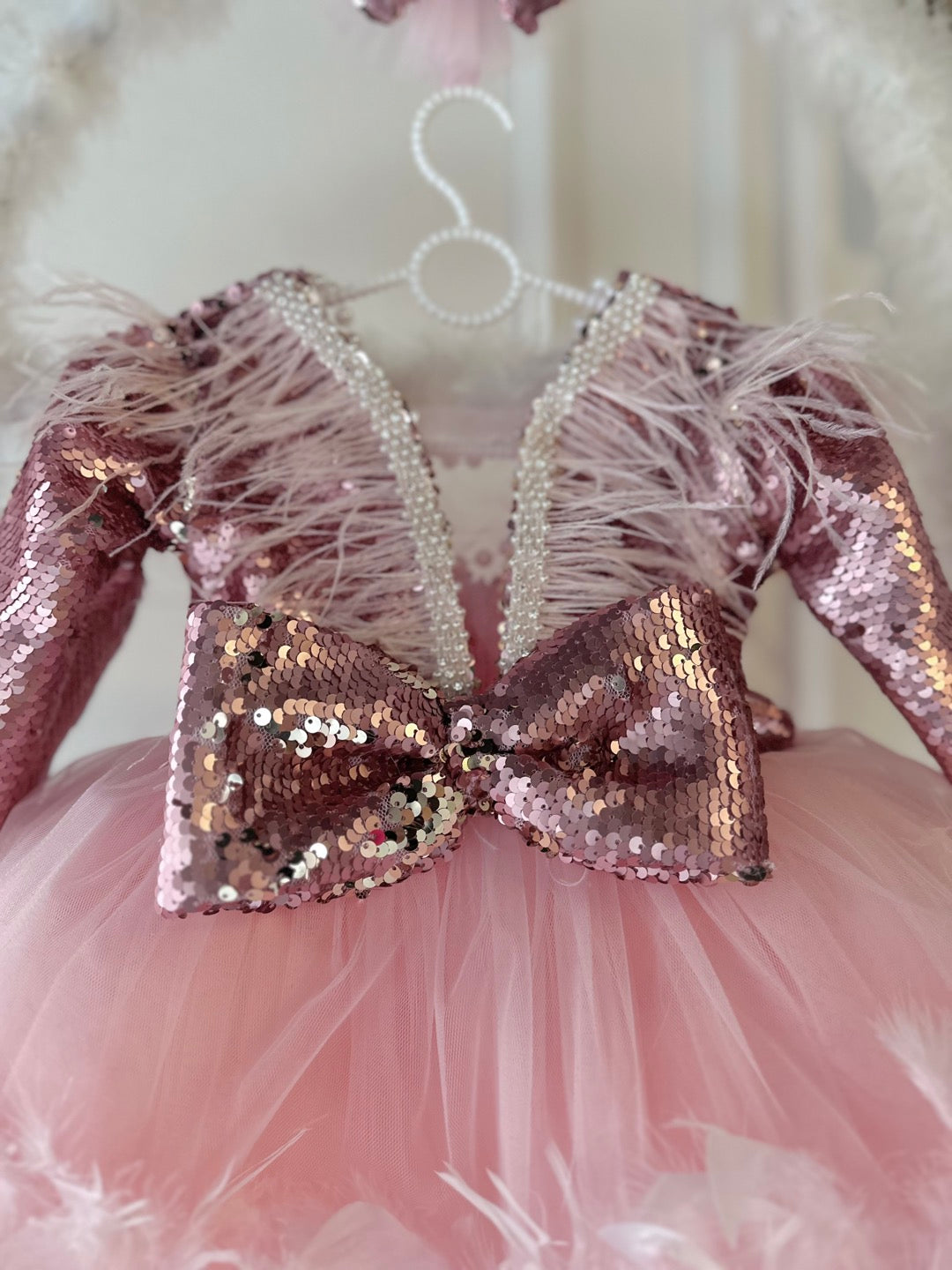 Prenses Çift Taraflı Payet Tül Detay Toz Pembe Bebek Abiyesi , özel günlerde minik prenseslerin zarafetini ortaya çıkaracak şık bir görünüme sahiptir. Yumuşak tül kumaşı detaylı eteğiyle taşınırken rahat aynı zamanda göz cihazı bir şıklık kazanır. Toz Pembe rengi zarif tasarım, doğum günü, düğün, nişan, bayram ve özel davetlerde taşınabilire masalsı bir görünüm kazandırır.