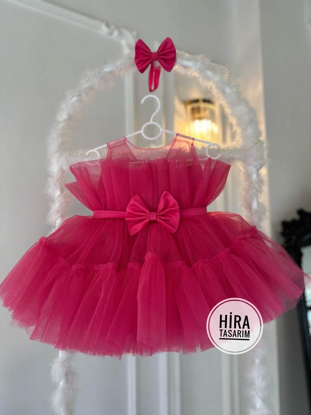 Prenses Tül Detay Fuşya Bebek Abiyesi, özel günlerde minik prenseslerin zarafetini ortaya çıkaracak şık bir tasarıma sahiptir. Yumuşak tül kumaşı detaylı eteğiyle bebeğiniz rahat ederken aynı zamanda göz alıcı bir şıklık kazanır. Fuşya rengi süslenmiş zarif tasarımı, doğum günü, düğün, nişan, bayram ve özel davetlerde bebeğinize masalsı bir görünüm kazandırır.