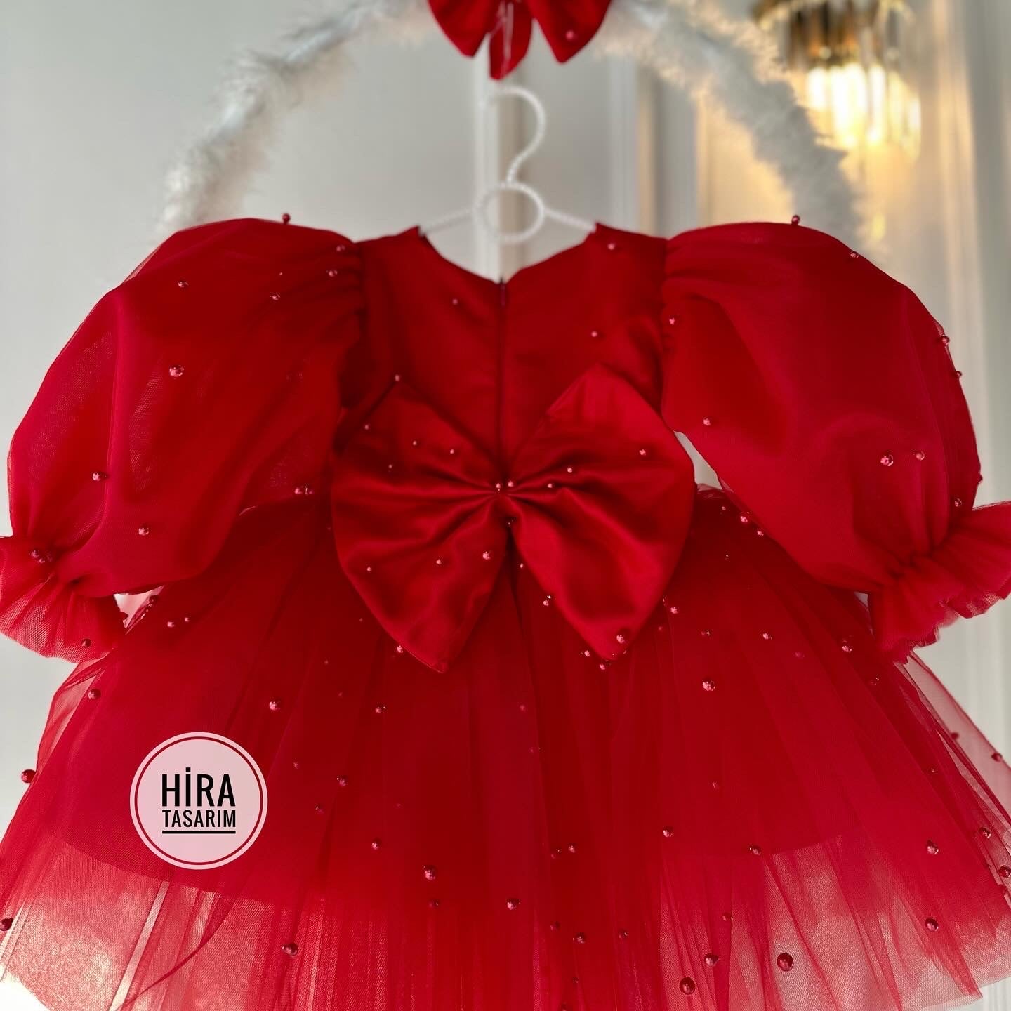 Prenses İnci Tül Kırmızı Bebek Abiyesi, özel günlerde minik prenseslerin zarafetini ortaya çıkaracak şık bir tasarıma sahiptir. Yumuşak tül kumaşı detaylı eteğiyle bebeğiniz rahat ederken aynı zamanda göz alıcı bir şıklık kazanır. Kırmızı rengi süslenmiş zarif tasarımı, doğum günü, düğün, nişan, bayram ve özel davetlerde bebeğinize masalsı bir görünüm kazandırır.