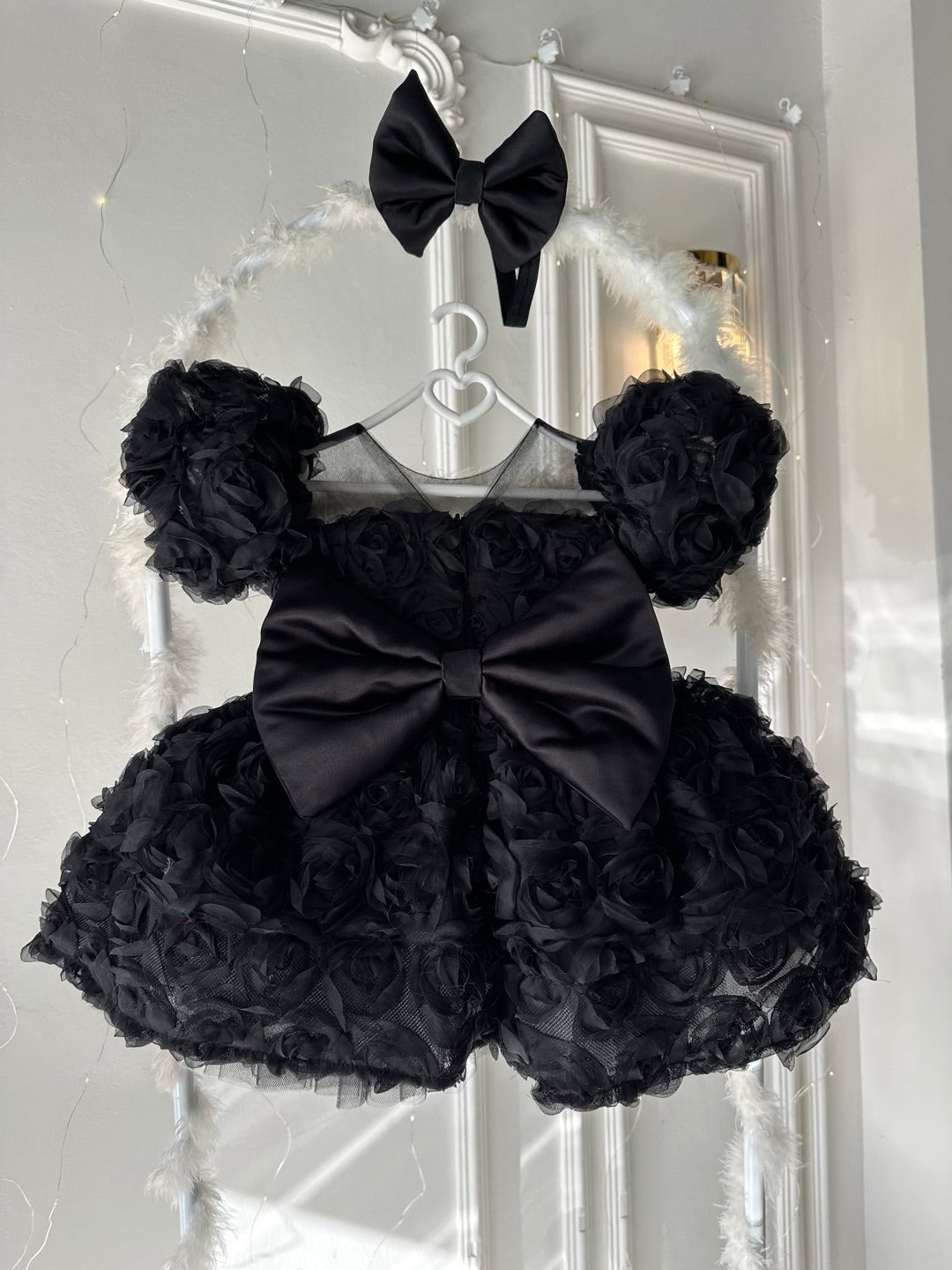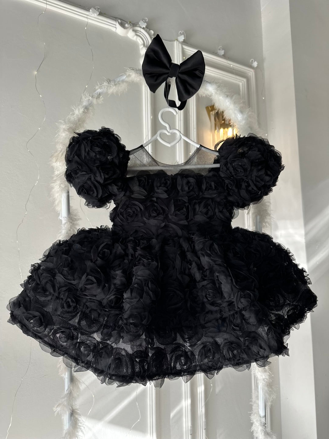 Tül Yaka Siyah Güllü Bebek Abiyesi, özel günlerde minik prenseslerin zarafetini ortaya çıkaracak şık bir tasarıma sahiptir. Yumuşak tül kumaşı detaylı eteğiyle bebeğiniz rahat ederken aynı zamanda göz alıcı bir şıklık kazanır. Siyah rengi güllerle süslenmiş zarif tasarımı, doğum günü, düğün, nişan, bayram ve özel davetlerde bebeğinize masalsı bir görünüm kazandırır.