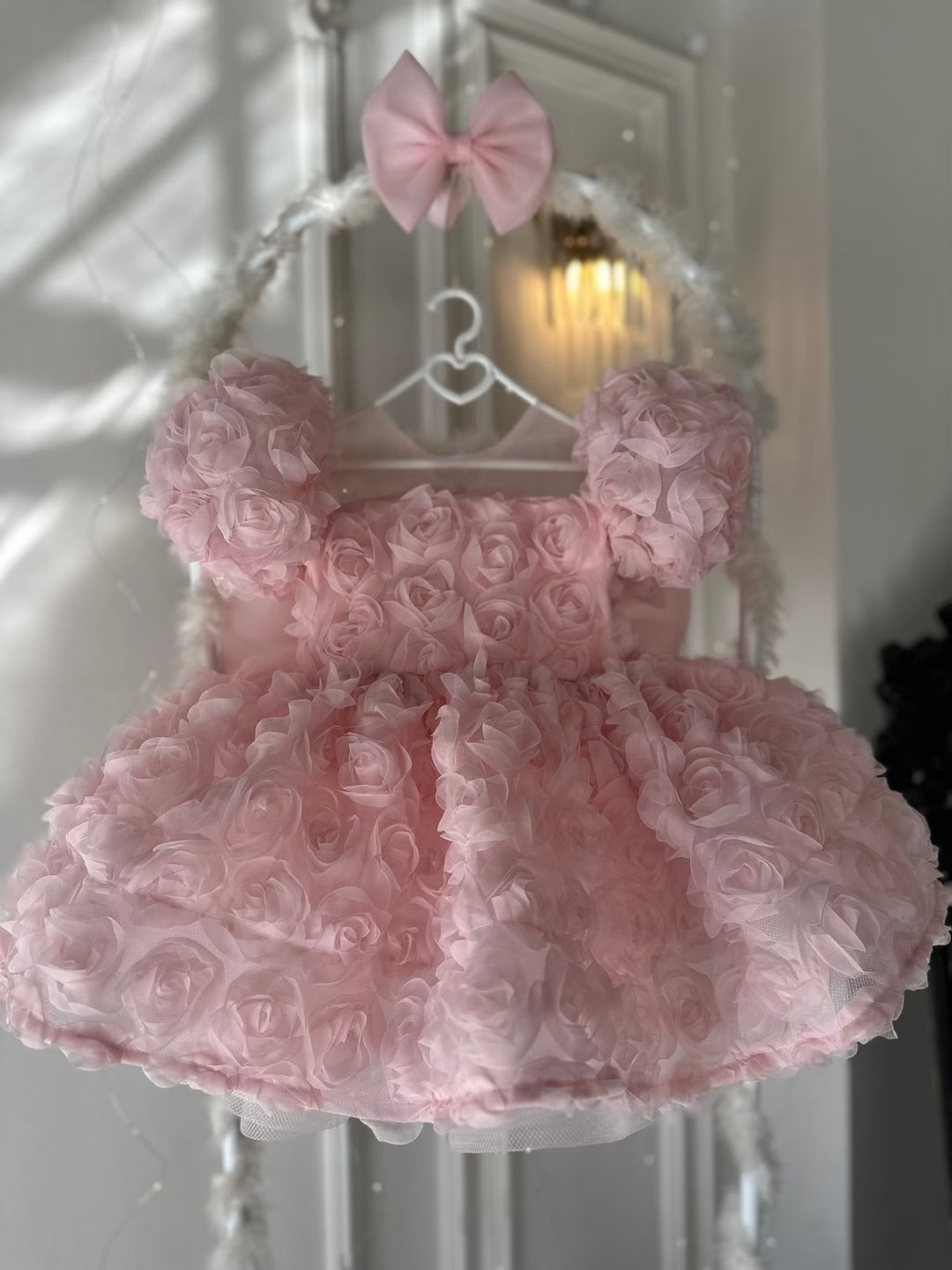 Tül Fiyonk Prenses Pudra Güllü Bebek Abiyesi, özel günlerde minik prenseslerin zarafetini ortaya çıkaracak şık bir tasarıma sahiptir. Yumuşak tül kumaşı detaylı eteğiyle bebeğiniz rahat ederken aynı zamanda göz alıcı bir şıklık kazanır. Pudra rengi güllerle süslenmiş zarif tasarımı, doğum günü, düğün, nişan, bayram ve özel davetlerde bebeğinize masalsı bir görünüm kazandırır.